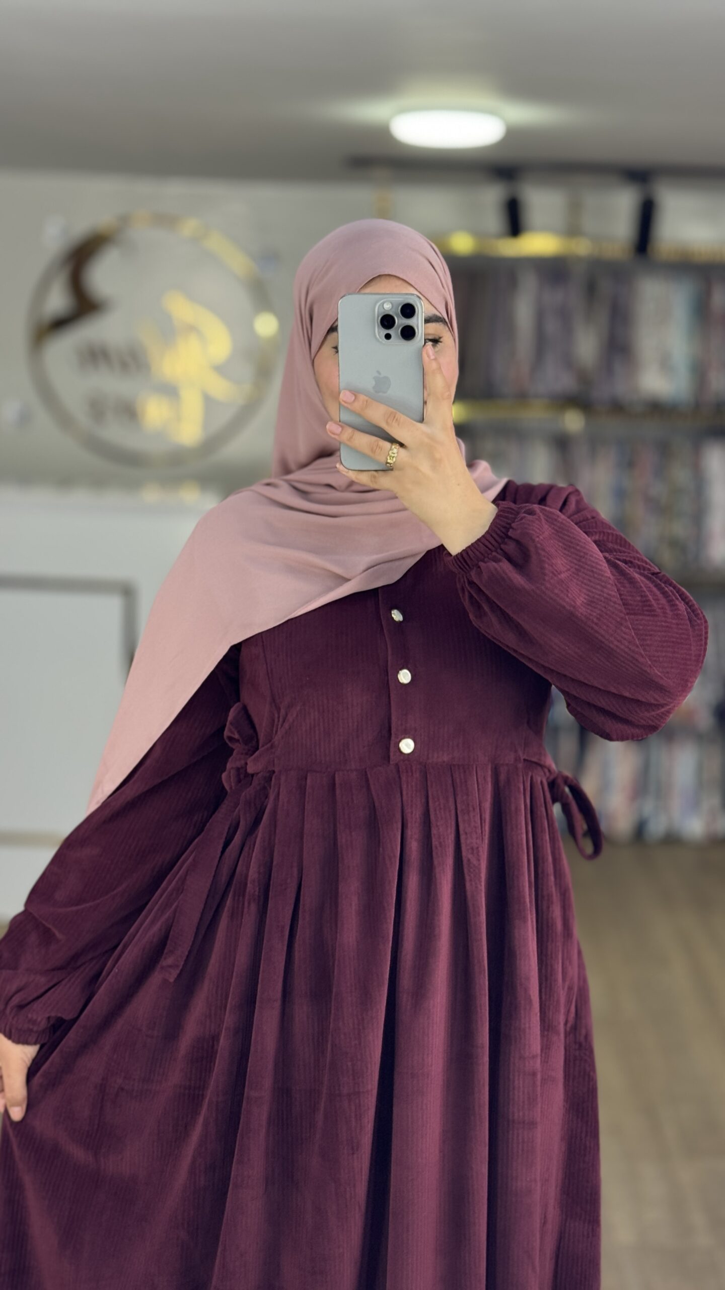 ثوب قطيفة بجودة ممتازة، كيجمع بين الأناقة والراحة فتصميم محتشم وراقي.